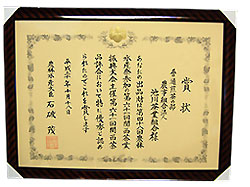 また、平成13年、平成14年、平成16年と高知県茶品評会におきまして、名誉ある農林水産大臣賞を連年受賞、また平成20年には関西茶品評会において 農林水産大臣賞を受賞いたしました。
